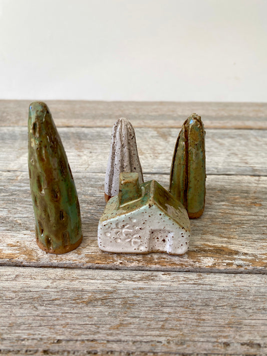 I create abstract landscape inspired paintings, make small batches of hand formed organically shaped ceramics for slow and mindful living, as well as art cards and collages. I sometimes run stress-free watercolour painting workshops.