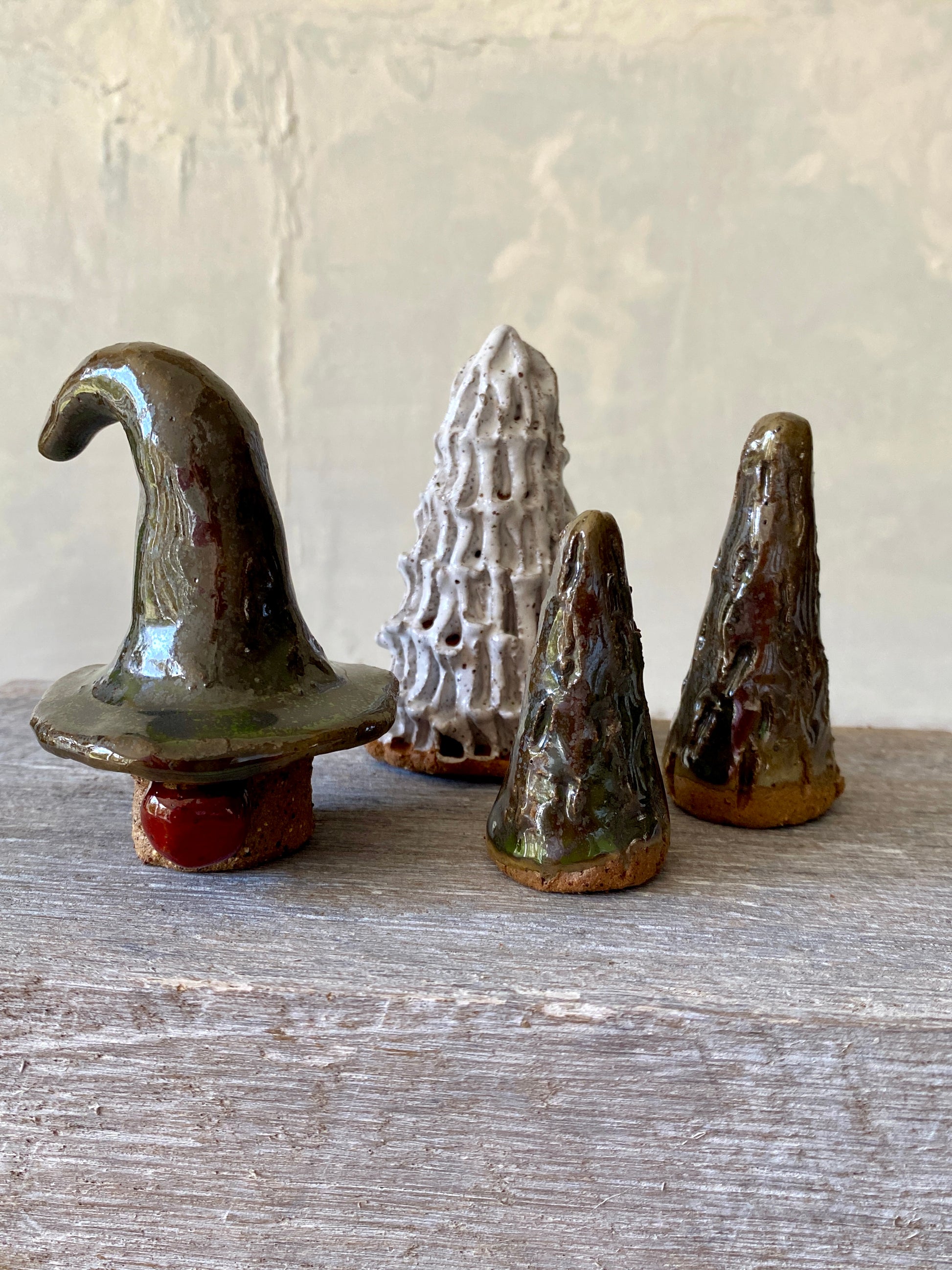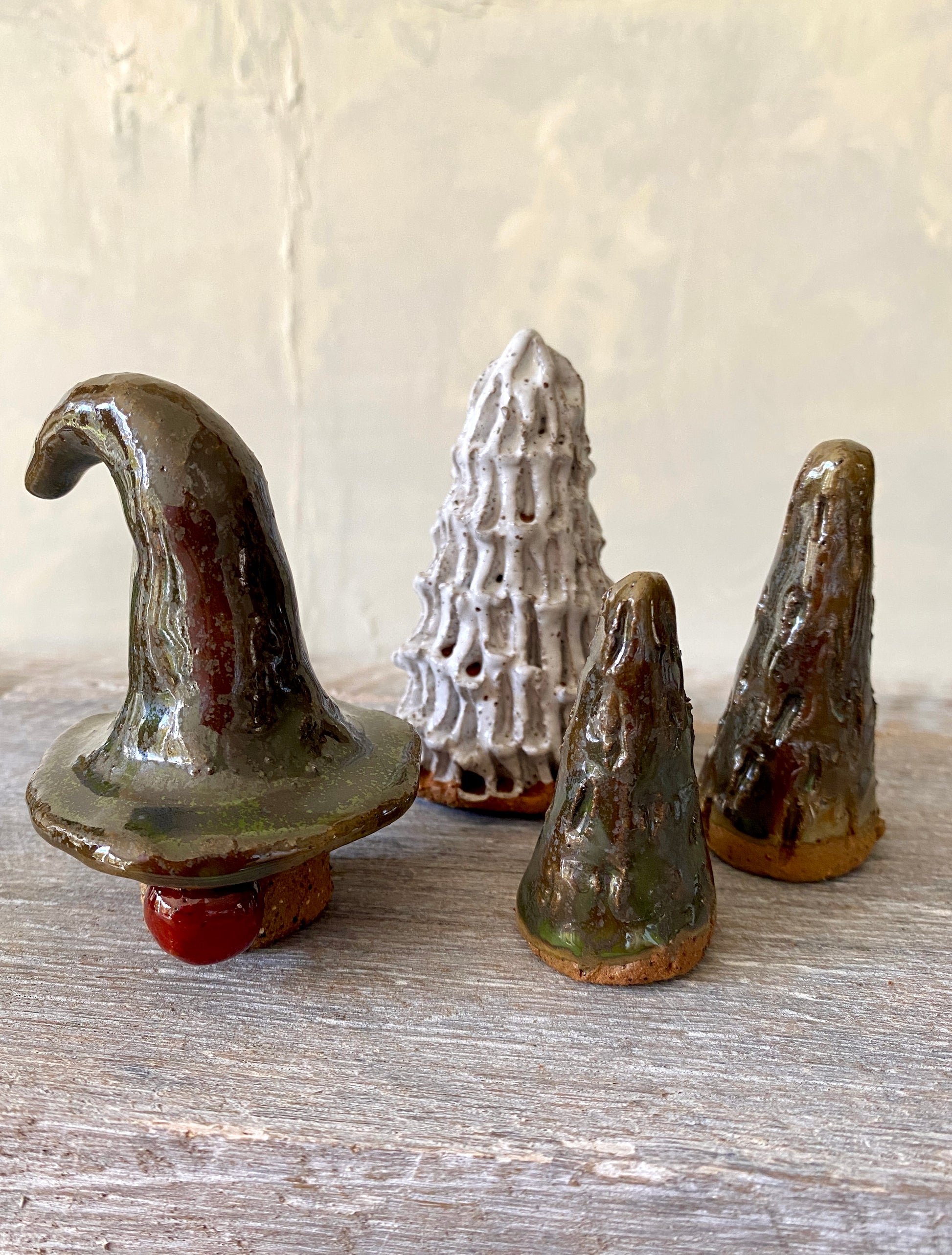 The gnome, along with three trees is lovingly handcrafted from rustic, speckled stoneware clay, making every piece one-of-a-kind. Standing between 6-8 cm tall, they’re perfect for styling your mantelpiece, windowsill, or holiday table with a touch of Nordic tradition.