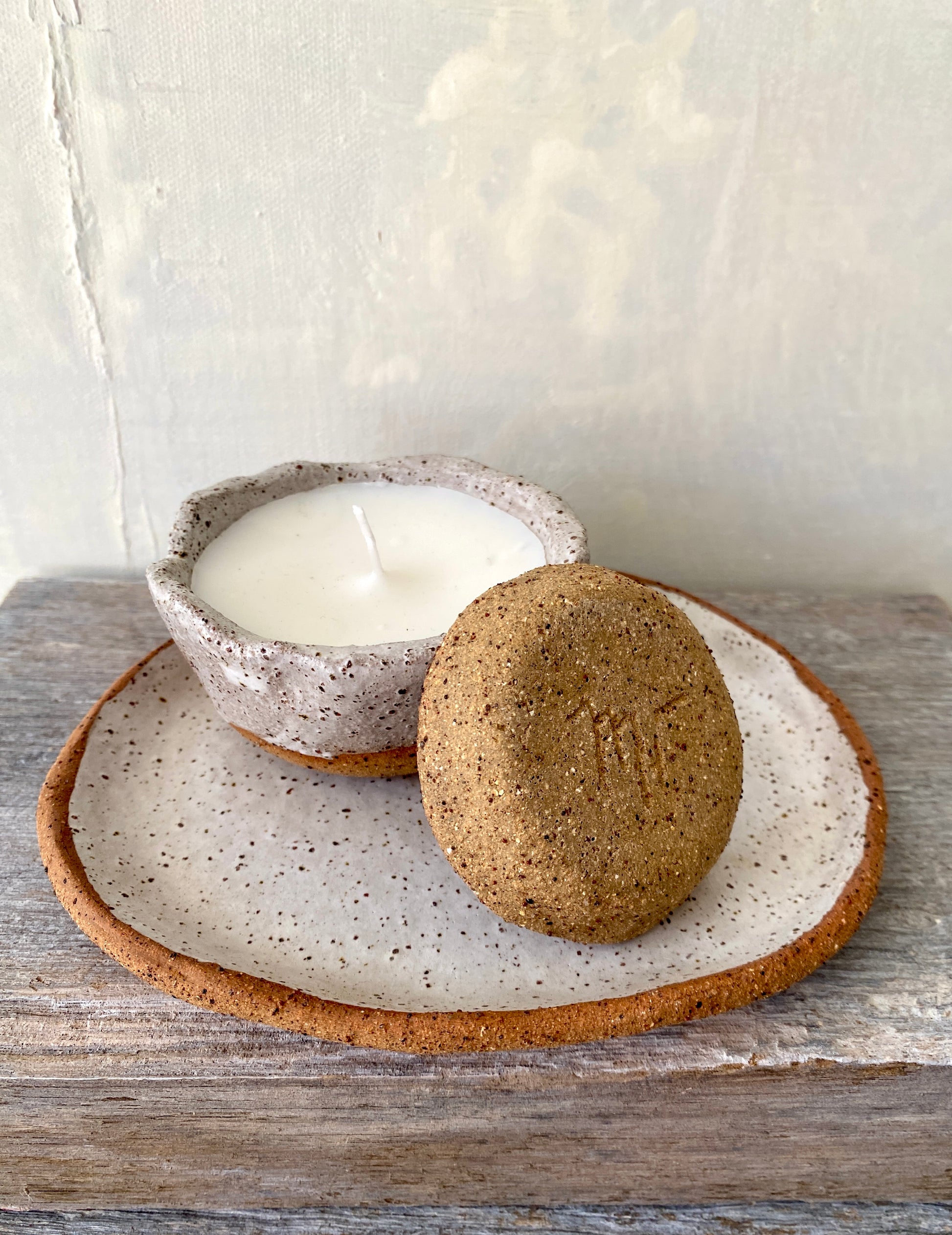 Handmade Rustic Plate + Hand poured candle + small dish 45-13