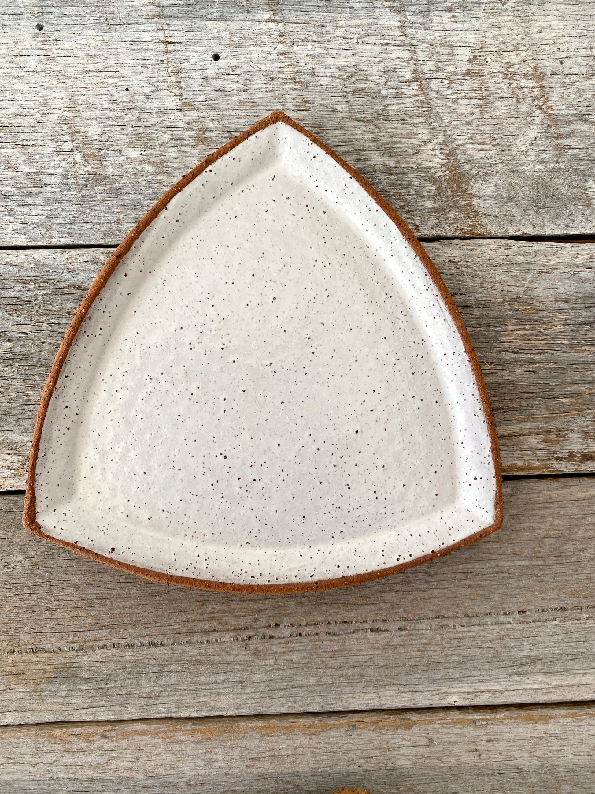 SALE - Triangular Plate (Medium) - Rustic & Handmade- White glaze with speckles 2508-03