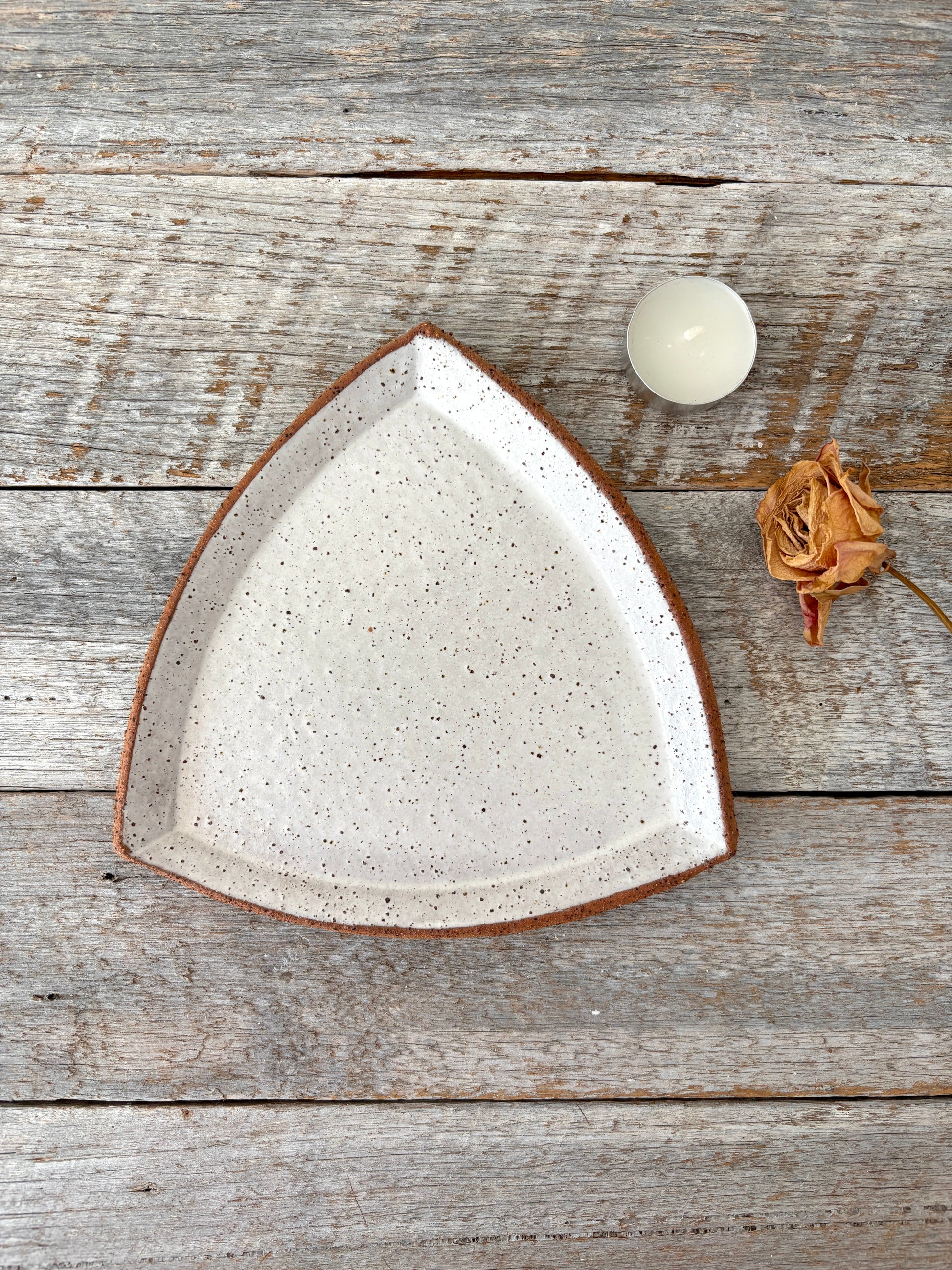 Triangular Plate (Medium) - Rustic & Unique - White with speckles 26-11
